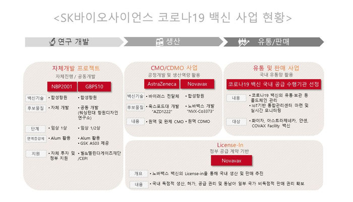 SK바이오사이언스(대표 안재용, 이하 SK바사)는 코로나19 백신 ‘NVX-CoV2373’을 독자적으로 생산, 국내에 공급코자 미국 노바백스와 기술 이전 계약을, 질병관리청과 백신 공급 계약을 각각 체결했다고 16일 오늘, 밝혔다. 해당 백신을 국내서 독점적으로 생산 및 허가, 판매할 수 있는 권리를 확보하게 된 것.