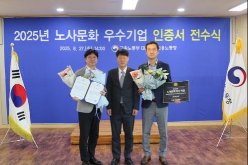 【후생신보】GC녹십자(대표 허은철)는 지난 27일 고용노동부로부터 ‘2025 노사문화 우수기업’으로 선정되어 인증서를 받았다고 28일 밝혔다.