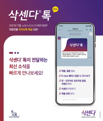 【후생신보】한국 노보 노디스크제약(사장 라나 아즈파 자파, 이하 노보)이 보건 의료 전문가들을 위한 의료진용 카카오톡채널 ‘삭센다 톡’을 오픈했다.
