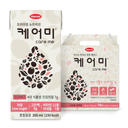 【후생신보】한미약품그룹 계열사 한미헬스케어(대표이사 임종훈)는 독자 개발한 4대 식물성 유지와 5:5 비율로 균형을 잡은 동·식물성 단백질, 비타민 11종, 미네랄 7종, 프리바이오틱스∙포스트바이오틱스 등 26종의 영양 성분을 함유한 고단백 종합 영양음료 ‘케어미(care me, 사진)를 출시했다고 14일 밝혔다.
