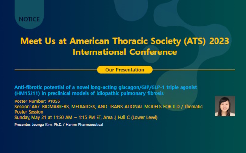 이번 ATS에서 발표한 연구 결과는 특발성 폐 섬유증 모델에서 LAPSTriple agonist의 효력을 평가한 것으로, 한미약품은 LAPSTriple agonist 반복 투약시 혈중 산소포화도가 증가하고 섬유화 지표들이 유의하게 개선된 점을 확인했다. 이 같은 섬유화 진행 억제 및 폐 기능 개선을 통해 동물모델에서 질병 진행에 따른 사망률을 낮췄다.