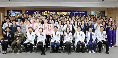 기념식에는 김형수 병원장과 강준구 진료부원장, 이승대 행정부원장, 윤금선 간호부장 등 주요 보직자와 교직원 300여 명이 참석했다.