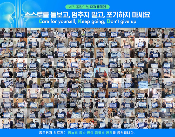 전국 의료진과 종근당 임직원은 CKD 캠페인 메시지가 담긴 보드를 들고 사진을 촬영하며 조기진단의 중요성과 환자 응원에 나선 것.