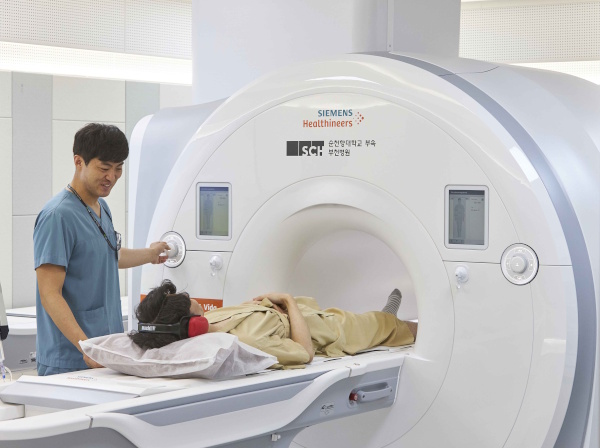 ▲ 순천향대 부천병원 의료진이 환자에게 MRI 검사를 시행하고 있는 모습.