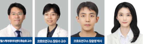 ▲(왼쪽부터) 강북삼성병원 헬스케어데이터센터 류승호 교수·코호트연구소 장유수 교수·장윤영 박사, 서울아산병원 조유선 교수.