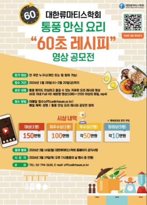 대한류마티스학회, 통풍 안심 요리 ‘60초 레시피’ 영상 공모전 개최
