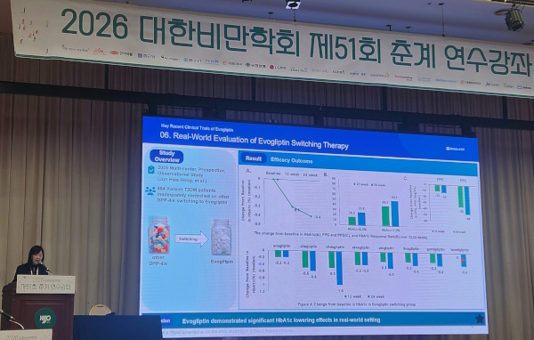 그는 “환자 특성을 고려한 맞춤형 당뇨병 치료 전략에서 DPP-4 억제제와 SGLT2 억제제의 병용 요법은 강력한 혈당 강하 효과와 우수한 안전성을 동시에 확보할 수 있는 선택지다”며 “그중에서 evogliptin은 신기능 저하, 고령, 감염 위험 등 실제 임상현장에서 흔히 마주하는 복합 환자군에서도 안정적으로 사용 가능한 약제로, 초기 치료부터 병용 치료까지 폭넓게 적용 가능한 치료 옵션이다”고 말했다.