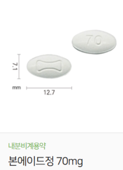 동구바이오제약의 본에이드정70밀리그램의 효능 효과는 폐경후 여성의 골다공증 치료, 남성의 골다공증 치료다.