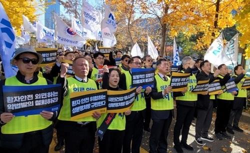 한편 이날 대표자들은 궐기대회를 개최한 후 더불어민주당 당사까지 가두행진을 벌이고 정부의 의료악법 추진을 강력하게 규탄했다.