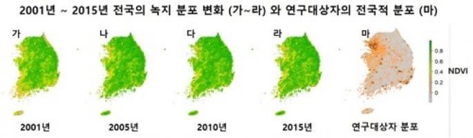 서울대병원, 서울특별시 보라매병원, 분당서울대병원이 참여한 만성콩팥병 임상연구에 등록된 6만 4,565명의 서울 거주 만성콩팥병 환자를 대상으로 녹지 노출에 따른 말기신부전의 발생과 생존율을 조사한 이번 연구결과, 거주지 주변 녹지가 많을수록 말기신부전의 발생과 사망률이 유의하게 낮았다.