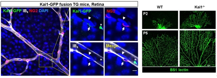 이와 함께 김 교수팀은 마우스 망막 혈관을 구성하는 내피세포 주위로 주피세포가 있으며 카이-원 단백질은 혈관 내피세포가 아닌 주피세포에서 주로 발현하고 있음을 규명, 유전자 조작을 통해 카이-원을 제거한 마우스 망막은 혈관 형성이 훨씬 활발하다는 것을 확인했다.
