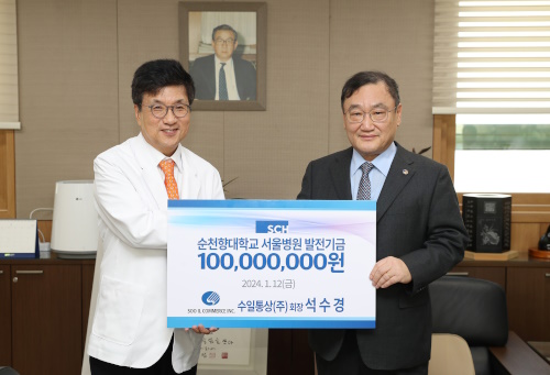 【후생신보】석수경 수일통상 대표가 12일 순천향대학교서울병원에 발전기금 1억원을 기부했다.