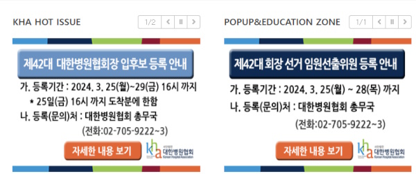 【후생신보】대한병원협회(회장 윤동섭, 이하 병협) 제42대 회장 선거가 한 달 앞으로 다가온 가운데 회장 입후보자 등록이 시작됐다.
