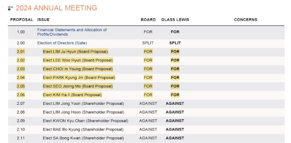 【후생신보】세계 최대 의결권 자문사 글래스루이스(Glass Lewis)가 한미사이언스 이사회 후보 6인에 대한 의결 안건에 대해 ‘전원 찬성’한다는 입장을 밝혔다. 반면 주주제안 측 인사 5인에 대해서는 ‘모두 반대’ 의사를 표명했다.
