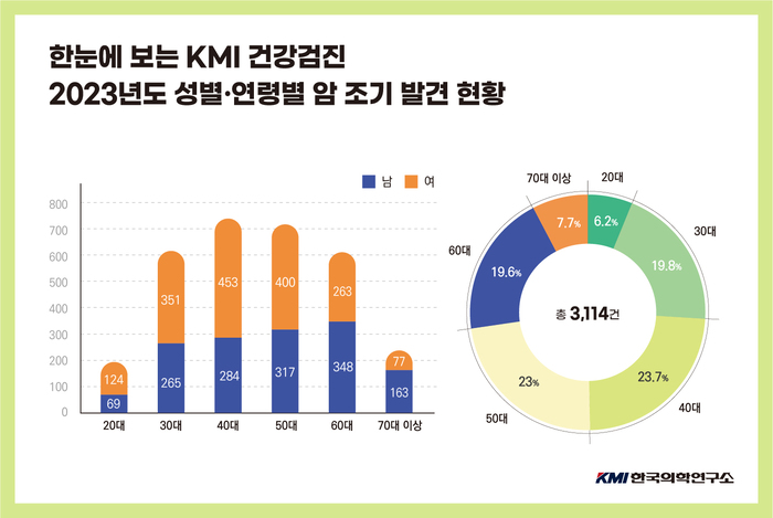 KMI한국의학연구소, 2023년 암 3,114건 조기 발견건강검진 후 진료의뢰건 등 분석...갑상선암>위암>대장직장암>유방암 순【후생신보】 KMI한국의학연구소(이하 KMI)는 지난해 KMI 건강검진을 통해 총 3,114건의 암을 조기에 발견했다고 25일 밝혔다.