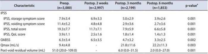 또한 잔뇨량도 수술 후 6개월 시점에서 크게 감소했으며 과민성방광 증상점수도 유의미하게 개선됐다.