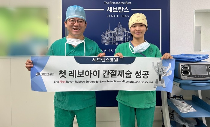 ![]() ▲ 세브란스병원 간담췌외과 최기홍 교수(왼쪽)와 김나름 교수가 레보아이를 이용한 간편엽절제술에 성공했다. |