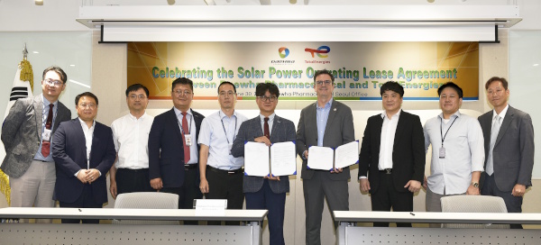 【후생신보】대화제약은 글로벌 에너지 기업 토탈에너지스(TotalEnergies)와 태양광 발전설비 설치를 위한 운영리스 계약(Solar Power Operating Lease Agreement)을 체결했다<사진>고 최근 발표했다.