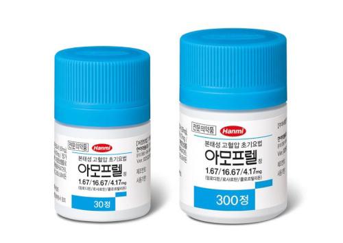 【후생신보】한미약품이 지난 1일 고혈압 치료 성분 3가지를 저용량으로 복합한 항고혈압제 신제품(아모프렐, 사진)을 국내 시장에 출시했다고 4일 밝혔다. 이 같은 저용량 조합 3제 복합제는 한미가 세계 최초로 개발했다.