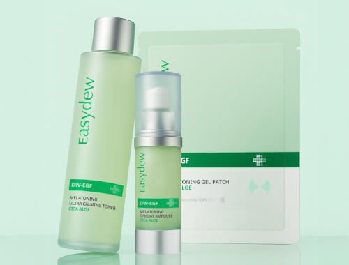 대표 제품 '멜라토닝 원데이 앰플 시카알로에’는 누적 2천만 병 이상 판매된 이지듀의 베스트셀러 ‘기미앰플(DW-EGF 멜라토닝 원데이 앰플)’의 여름 버전 제품이다. 특히 기미 케어 성분인 DW-EGF(고활성 상피세포 성장인자)와 미백 기능성 성분을 그대로 담아내면서, 피부 진정 성분인 시카알로에 콤플렉스를 추가해 피부 열감 진정 효과를 강화했다.