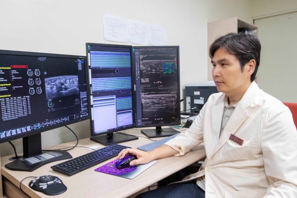▲AI 기반 3D 유방자동초음파 판독 중인 삼성창원병원 영상의학과 이광희 교수.
