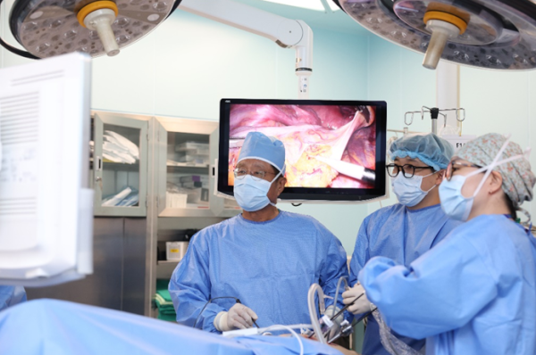 ![]() ▲ 삼성서울병원 이우용 교수가 대장암 수술을 집도하고 있다. 이우용 교수는 삼성서울병원 암병원장이다. |