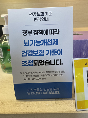특히 대형 종합병원에서는 1개월, 3개월 이상 장기 처방이 이뤄지는 경우가 많기 때문에 환자가 체감하는 부담은 더 크다. 이에 일부 대형병원에서는 신경과 등 진료실 복도에 콜린의 가격 변경 안내문이 비치되고 있는 실정이다.